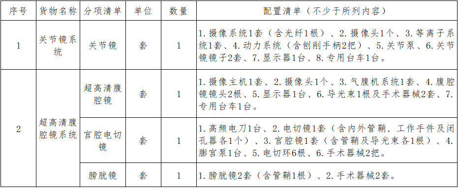 邹区医院腹腔镜、膀胱镜、关节镜、宫腔镜设备采购项目,本采购项目包括相应产品供货前的准备(包括现场踏勘、技术核对等)、产品(包括备品备件、专用工具)、设计、制造、加工、检验、包装、发货、保险、技术资料、生产(采购)、运输、安装调试、技术服务、验收、培训、售后服务、质保期及维保服务等全部工作。